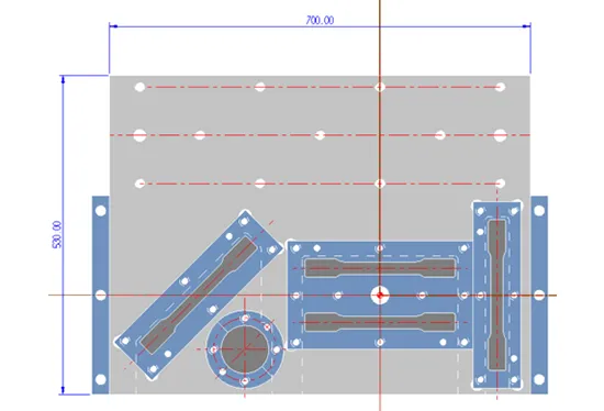 - Optional for multiple specimen shape punches on same tool to punch more samples from a single punching operation (“Monster” Press for 16 samples one punch)